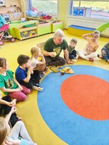 Již tradičně nás, stejně jako v minulých letech, navštívil pan Miroslav Dvořák – včelař, znalec přírody a učitel včelařství, který vede dětské včelařské kroužky a v Semtínku na Voticku provozuje menší rodinné včelařství. Zároveň se stará o včely v areálu Ochrany fauny ČR na Sedlčansku. Pro děti si připravil poutavý interaktivní program o životě včel. Srozumitelně a zajímavě jim přiblížil jejich svět, chování i význam pro přírodu. Děti si prohlédly různé pomůcky včetně modelu včely a ochutnaly med, který jim velmi chutnal. Celá školka se navíc krásně provoněla včelím voskem při výrobě svíček – děti si vyzkoušely lité i stáčené. Pan Dvořák umí děti zaujmout a předat jim mnoho zajímavých informací o těchto důležitých tvorech, bez kterých by na naší planetě Zemi zanikl život. Za milou návštěvu velmi děkujeme.