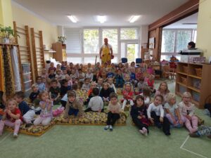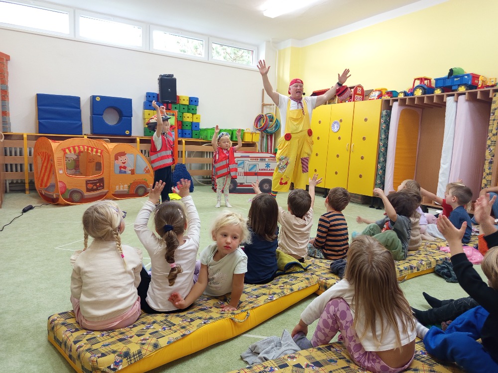 Ve čtvrtek 16.10.2025 do naší mateřské školy zavítal oblíbený herec Honza Krejčík se svým novým interaktivním programem pro školní rok 2025/2026 „Malý záchranář“. Děti se prostřednictvím písniček, her a veselých scének seznámily s tím, jak pečovat a chránit své zdraví a předcházet případným úrazům. Jak se chovat v nebezpečných situacích a koho volat, když se něco stane a jak pomoci kamarádovi. Dále si názorně předvedly, z jakých potravin se skládá zdravý talíř.